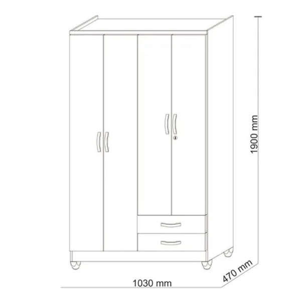 Ropero 4 Puertas Line Imbuia Rustico / Champagne