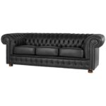 Sillón 100% Cuero 3 Cuerpos Chesterfield Negro