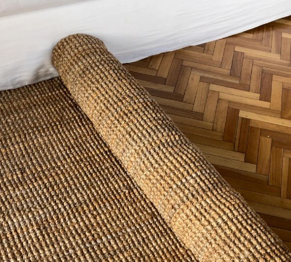 Realza el estilo de tus espacios y cuida el planeta con la alfombra Yute Boucle, hecha a mano con yute.