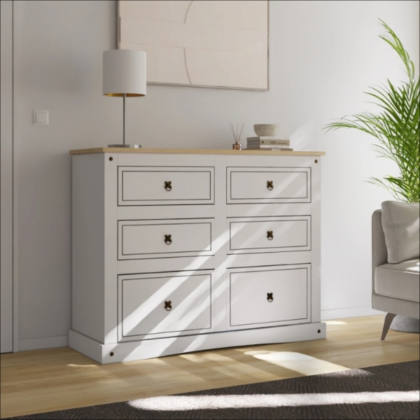 Cómoda 6 Cajones Línea Mexicana Mex029 Blanco/Natural