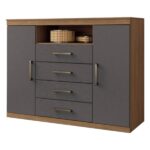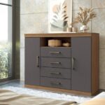 Puertas con bisagras metálicas, 4 cajones con rieles metálicos,2 estantes 1 caballete metálico aluminio Espacio para acomodar aparato de DVD Tiradores de aluminio