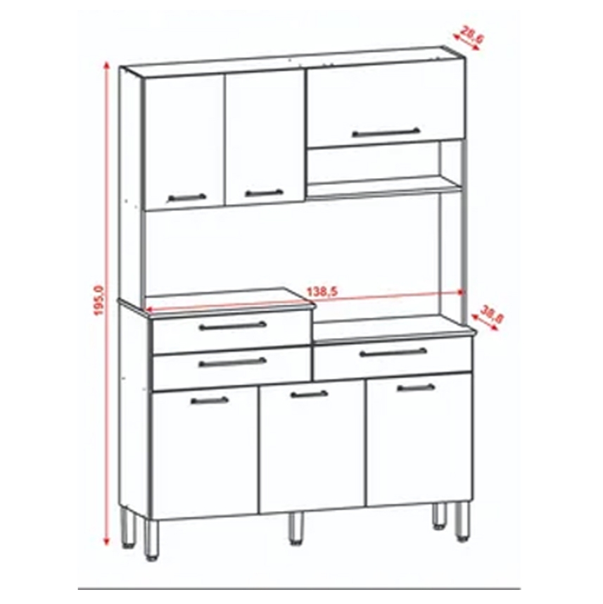 6 puertas (1 superior basculante con piston a gas)