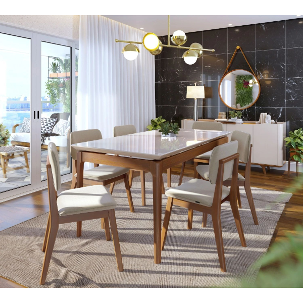 Mesa De Comedor Wind 1.6 Rectangular Linea Manhattan Off White/Nature 615