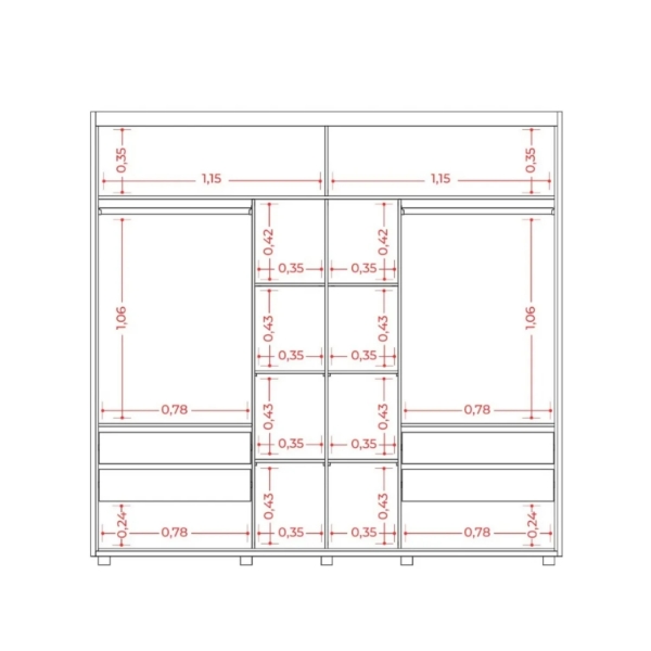 Ropero 2 Puertas Corredizas 4 Cajones Acacia