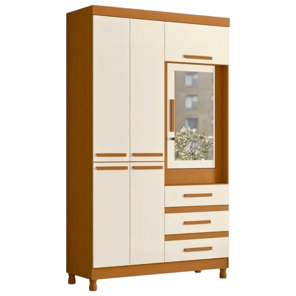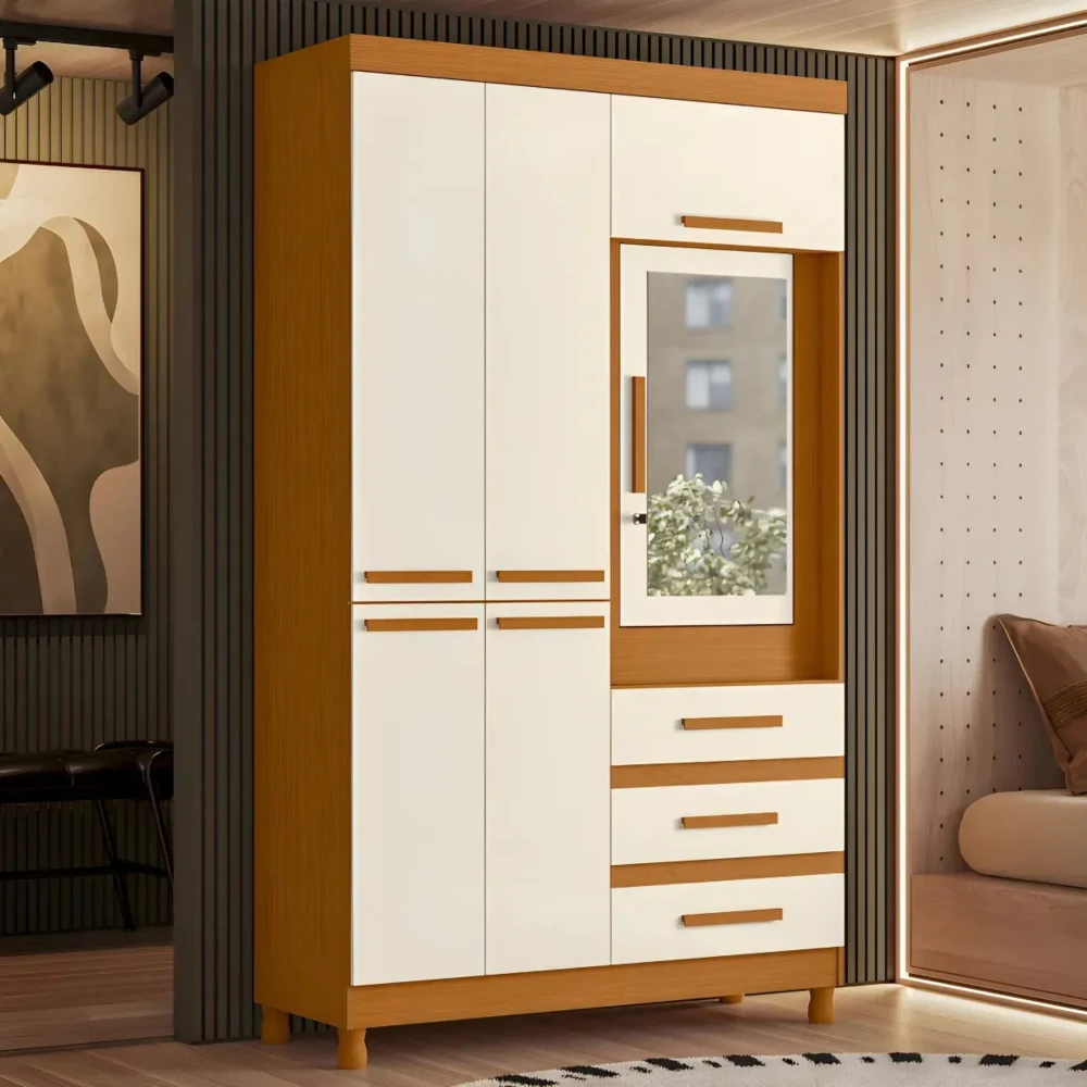 Ropero con Espejo 6 puertas 3 Caj Fusión – Cinamomo/Off White