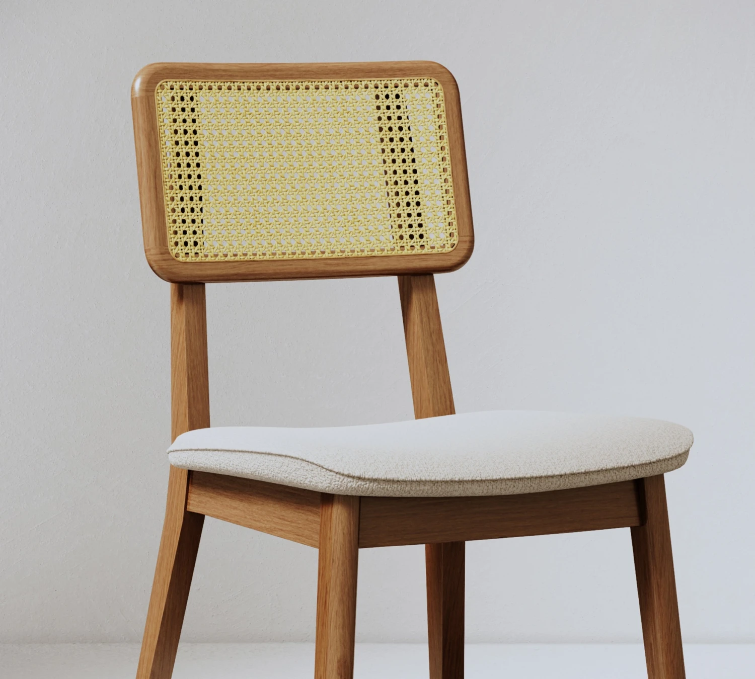 Silla de Comedor Classic Tela Boucle Natural/Rattan 446