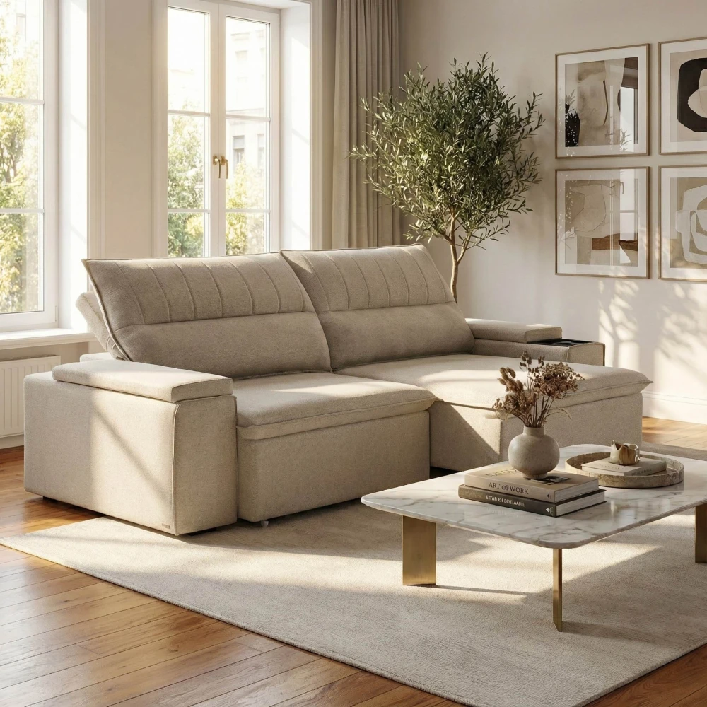 Sillón 3 Cuerpos Reclinable y Retráctil Pavia – Beige